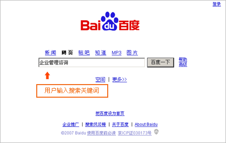 | 第一步:用戶輸入關(guān)鍵詞,如:企業(yè)管理咨詢 |