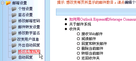 1> 登錄郵箱進入首頁,點擊"郵箱設(shè)置"下的"修改處理規(guī)則"。