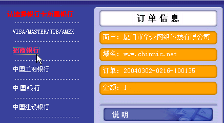 3、如果您傳真或者掃描都不方便,那么請(qǐng)您在匯款的時(shí)候多匯款一個(gè)尾數(shù),比如需要匯款1680元,那么請(qǐng)匯款例如1680.2元。匯款之后,請(qǐng)直接發(fā)送email至:caiwu@chinnic.net,信中請(qǐng)?jiān)敿?xì)注明以下信息: