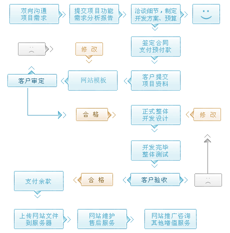 制作網(wǎng)站是一項(xiàng)很復(fù)雜的工程,網(wǎng)站制作從專業(yè)的方面講可以稱之為是生物學(xué)的延續(xù),是工程學(xué)的集中表現(xiàn)。但網(wǎng)站制作,更是一個(gè)深入淺出的過程。網(wǎng)站制作一切以人為本,用戶體驗(yàn)始終放在第一位,僅僅注重外表的美觀,那就會(huì)變成一個(gè)華而不實(shí)的外殼。網(wǎng)頁設(shè)計(jì),網(wǎng)站架構(gòu),代碼編寫也不僅僅是一個(gè)復(fù)制粘貼的過程。網(wǎng)站制作要突出個(gè)性,注重瀏覽者的綜合感受,令其在眾多的網(wǎng)站中脫穎而出。網(wǎng)站制作的目的是通過網(wǎng)站達(dá)到開展網(wǎng)上營(yíng)銷,實(shí)現(xiàn)電子商務(wù)的目的。從通俗的方面來說網(wǎng)景科技認(rèn)為網(wǎng)站制作必備工作應(yīng)該是:網(wǎng)站策劃+美工設(shè)計(jì)+程序開發(fā)+網(wǎng)站測(cè)試,網(wǎng)站的制作過程與客戶的互動(dòng)過程必須要經(jīng)歷右圖所示過程,所以網(wǎng)站制作的價(jià)格也是從這些方面體現(xiàn)出來。