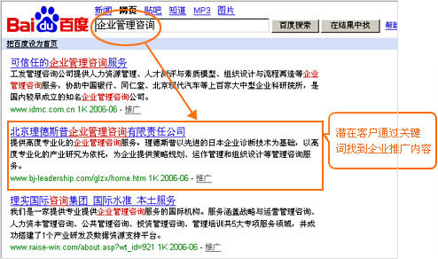 | 第二步:在用戶搜索的結(jié)果中,排名企業(yè)的推廣信息優(yōu)先顯示在用戶面前 |
